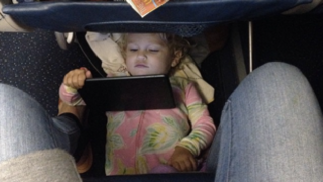 Courtesy of Jezebel’s own Jane Marie comes a solution to traveling with her daughter, Goldie, who refers to this space as “Goldie’s seat.” Before you scold, please note that the flight crew has never said a word about this. So hey, Goldie, you do you. Whatever it takes to keep a kid quiet and content.